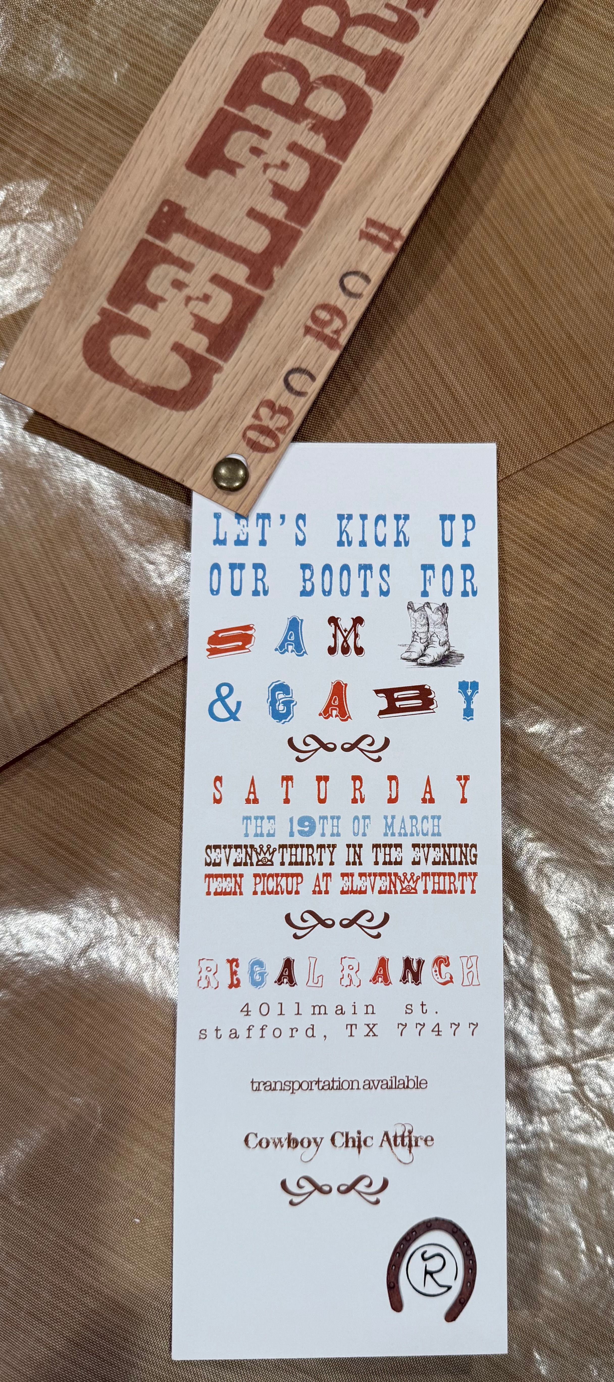 She designed a logo. Burned it into wood invitations. Built centerpieces from wrapped books. Used her kids’ artwork as decor. I love the no-waste approach and sentimental value of these ideas and ask for pictures, which she kindly sends!